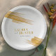 Minimalistische, goldbraune Farbtinte streichelt Hochzeitspapier-Teller. Weitere passende Elemente und Farboptionen sind verfügbar. © Original ink Pinselstrich Kunst und Design von Sarah Trett für www.mylittleedenweddings.com auf Zazzle.