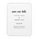 Minimalistisch speichern Sie den Datums-Magneten mit einem schlichten, aber eleganten Design mit den Worten: "rett unser Datum" in einer schwarzen Schrift und Ihre Details unten, auf einem weißen Hintergrund. Text und Hintergrund können in beliebig viele Farben geändert werden. Ein elegantes und modernes Design, um das Datum Ihrer Hochzeit im Stil bekannt zu geben.