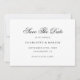Schwarz-Weiß-Hochzeit speichern Sie die Datumskarte mit einem eleganten Script-Schriftart. Matching-Elemente verfügbar.