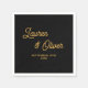 Erhöhen Sie Ihren Hochzeitsstil mit raffinierten Personalisierten Napkins. Eleganter Schwarz-Gold-Script-Schriftart personalisiert mit Paarnamen und Hochzeitstermin.