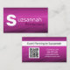 Große Schriftart Namen Set von der Vorderseite dieses minimalistischen Design. Auf der Rückseite befindet sich ein farblich koordiniertes Design mit Textfeldern für den Namen, die Details und den qr-Code. Ersetzen Sie den QR-Code auf der Rückseite durch Ihren. Personalisieren Sie die Vorlagenfelder, oder klicken Sie auf Anpassen, um Stil, Größe und Farbe der Schrift auszuwählen.