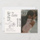 Foto- und QR-Code Save the Date | Elegant entworfen in einer beruhigenden, beige Kulisse, eine delikate Line Art Blume ziert die Einladung, ihre Blütenblätter mit subtilen Daben von gemusterten, staubigen Pflaumenflecken. Die Einfachheit des Designs wird durch die rechtwinklige Anordnung eines Textes erhöht, indem eine Touch von Einzigartigkeit hinzugefügt wird ©WhimsicalArtwork™
