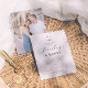 Diese elegante Hochzeitseinladung beinhaltet ein individuelles Hochzeitsmonogramm ganz oben auf der Karte. Das Monogramm verbindet die Initialen der Paarnamen mit einer rustikalen, handgezeichnet Blatt-Rechtschreibweise. Der Vorname ist in Chic-Script-Kalligraphie geschrieben, der zweite in klassischen Serif-Hauptstädte. Darunter werden Datum, Jahr und Uhrzeit in drei Zeilen gedruckt, gefolgt von Veranstaltungsort und Adresse. Es gibt eine horizontale Trennlinie, um die Textabschnitte zu trennen. Am Ende der Karte gibt es Platz, um zusätzliche Informationen über den Empfang, den Kleidercode oder alles andere hinzuzufügen. Karten kehren zu einem vollblütigen Verlobung-Foto des Paares zurück, wodurch diese zu einem wertvollen Sake einladen. Ein schlichtes und elegantes Design, das sich perfekt für feierliche Hochzeiten in Schwarz-Krawatte eignet. Als Teil der Budgetauswahl auf Zazzle ist dieses Blatt keine Standard-Einladungsgröße oder Papierqualität. Wenn Sie dieses Design auf einer Einladungskarte gewollt haben, können Sie es in der Sammlung finden oder mit der Zazzle Make Machine auf das Produkt Ihrer Wahl übertragen. Sehen Sie sich die Sammlung auf dieser Seite verlinkt, oder besuchen Sie unseren Shop für weitere Einladungen zum Hochzeitsfeiern.