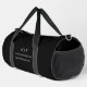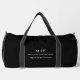 Moderne Minimalistische Duffle Tasche. Schwarz & Weiß oder wählen Sie Ihre eigenen Farben. Ideal für kleine Unternehmen, Firmen-Marken, Selbstständige, Gymnastik, Reisen und vieles mehr. Einfach mit Ihren Monogramm-Initialen, Firmennamen und Informationen, Jobtitel, Slogan oder sogar mit Ihrem Logo oder persönlichem Markendesign personalisieren.