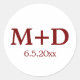 Minimalistische Red Couple Initialen und Datum Runder Aufkleber