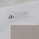 Mit diesen minimalistischen Schwarz-Weiß-Rücksendeadressen-Aufklebern aus der Simple Wish-Kollektion von Redwood & Vine Design Co. Mit einfachen Baumdarstellungen und moderner Typografie eignet sich dieses schlichte Design perfekt für die Verbindung von Weihnachtskarten, Umschlägen und saisonalen Schreibwaren. Eine raffinierte Wahl für Familien, die einen sauberen, eleganten Look für den Urlaub bevorzugen.