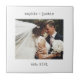 Diese einfache und minimalistische Keramik Kachel zeigt Ihr Lieblings-Hochzeitsstift mit Ihren Namen und das Jahr in schwarz Schreibmaschine Look Foto. Ein stilvoller Sake für Ihr erstes Jahr als Ehemann und Ehefrau.