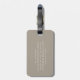 Personalisierter Gepäckanhänger mit Ihren Namen in einem minimalistischen Retro-Schriftart Schreibmaschine in Weiß in der Ecke auf einem taupe braunen Hintergrund.