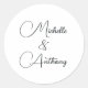 Vervollständigen Sie Ihre Hochzeitssaison mit diesem minimalistisch schwarz-weißen Hochzeitsaufkleber mit elegantem Schrift- und Serifentypografie-Design. Ideal für die Abdichtung von Einladungen, Dankeschön-Karten und Hochzeitskorrespondenz, fügt dieser klassische monochrome Aufkleber Ihrer Veranstaltung eine raffinierte und polierte Touch hinzu. Personalisieren Sie die Namen des Paares oder das Monogramm für ein ausgeklügeltes und zeitloses Aussehen.