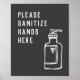 Minimalistische Schwarz-Weiß-Sanitize-Hände hier Poster