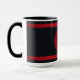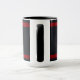 Moderne und wunderschön elegante, anpassbare erste 15 oz. (oder Trinkbehälter Ihrer Wahl) Kaffee-Tasse perfekt für geschäftliche und Zuhause-Nutzung. Schwarz-Rot Streifen mit passendem Kreis, einschließlich Rollen und gepflegtem Schriftart machen dieses Stück elegant, einfach und kühl!