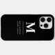 Minimalistisch Schwarz und Weiß Moderne benutzerdefinierte Monogram iPhone Case Erhöhen Sie Ihren Stil mit unserem minimalistisch vertikalen Design auf iPhone Gehäuse. Dieses elegante, monochrome Schwarz-Weiß-Gehäuse verfügt über ein großes typografisches Initial-Monogramm, mit dem Sie Ihre persönliche Touch hinzufügen können. Machen Sie es einzigartig, indem Sie den Text anpassen. Ihr Design, Ihr Stil, Ihre Aussage.
