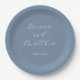 Einfache minimalistische Skript-Kalligrafie staubblauen Hochzeitsfeiern Teller für Ihre Hochzeitsfeier, Probe Dinner und Brautparty.