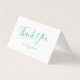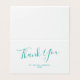 Eine einfache Hochzeitsdankkarte mit der Phrase "danke" in aquamarinen handgeschriebenen Schriftart, und Ihre Namen und Hochzeitsdatum in modernen Sans Serif Schriftart. Die Karte ist leer für eine eigene handgeschriebene Nachricht.