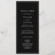 Dieses minimalistische Typografie dunkelschwarze Hochzeitsprogramm ist perfekt für eine einfache Hochzeit. Das moderne romantische Design besticht durch klassische schwarz-weiße Typografie. Anpassbar in jeder Farbe. Behalt das Design einfach und elegant, wie es ist, oder personalisiere es durch Hinzufügen von eigenen Grafiken und Kunstwerken. Geben Sie den Namen der Braut und des Bräutigams, das Datum und den Ort der Hochzeit, Dankeschön-Nachricht, Dienstordnung, Brautparty und ein optionales "in Loving Memorial" ein.