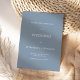 Minimalistische Typografie Dusty Blue Wedding. Die Farbe und der Typ des Schriftartes können über das Menü Bearbeiten geändert werden. Sie können auch Text- und Hintergrundfarben auf beiden Seiten ändern, wenn Sie möchten.