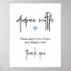 Ein minimalistisches Schild mit einem winzigen blauen Herzmotiv und einem informellen modernen Schriftart für eine moderne Babydusche. In dieser Kollektion sind auch die passenden Lose für den Versand an Gäste erhältlich.