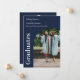 Zwei Abschluss oder doppelte Party Einladung-Karte. Zwei Foto des Absolventen erscheint auf der eleganten Party Postcard Einladung. Der Name, die Schule und das Unterrichtsjahr des Absolventen sind in lässiger, moderner schwarzer Schrift auf der Rückseite geschrieben.