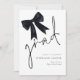 Minimalistischer Black Bow Script Grad Abschluss. Verfügbar in digitaler Form und gedruckt. Dieses Design verfügt über ein formloses Set-Handschriftenskript für den Hauptkopf, den Hauptgrad und die leicht zu personalisierende Typografie auf der unteren rechten Seite mit Ihren Details. Mit einer stilvollen Aquarellbogen-Abbildung.