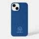 Minimalistischer blauer Ledertext Benutzerdefinier iPhone 14 Hülle