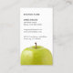Geschäftskartenschablone mit Foto eines grünen Apfels. Minimalistischer und sauberer Entwurf. Vervollkommnen Sie für Ernährungswissenschaftler, Diätetiker, Nahrungstrainer, Greengrocer.