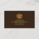 Auf der Rückseite, in einem ähnlichen braunen Deckel, sind die Details in der Mitte mit dem goldenen Logo oben, gefolgt von den Kontaktdaten und einem Slogan Option.