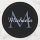 Minimalistischer blauer Kreis Modernes Monogramm mit blauem Initial- und Weißnamen auf schwarz. Personalisierbarer individuelle Name mit einer Serif, die auf einer schwarzen Farbe initialisiert wurde.