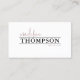 Das Design dieser Visitenkarte ist sauber, minimalistisch und beruflich. Es zeichnet sich durch einen weißen Hintergrund mit einer Kombination aus eleganten, kursiven und kühnen Serifen-Schriftart aus. Der Kursivtext ist über dem fett gedruckten Text positioniert und fügt eine weiche und künstlerische Touch hinzu. Eine horizontale Linie trennt den Haupttext, was zu einem ausgewogenen Layout beiträgt. Die Karte verwendet eine gedämpfte Farbpalette, einschließlich Schwarz und Mauve. Die Ästhetik betont Einfachheit und Eleganz.