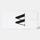 Individuell, personalisieren Monogramm, Initial, Buchstaben Schwarz-Weiß minimalistisch moderne elegante klassische schicke stilvolle iPhone Gehäuse. Anpassbarer schwarzer Text, weißer schlichter Hintergrund.