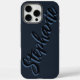 Moderner Minimalismus mit diesem schlanken Navy Minimalistisch Script Name iPhone 16 Pro Max Case. Dieses schicke Design zeigt Ihren Namen elegant in einem fließenden Skript vor einem tiefen marineblauen Hintergrund dargestellt, und schafft so einen sowohl schlichten als auch personalisierten Look. Ideal für alle, die gepflegte Linien, schlichte Eleganz und eine Touch moderner Eleganz schätzen. Dieser Fall ergänzt mühelos jeden Stil und ergänzt dabei Ihre Alltagsessentielle um eine Touch personalisierten Flairs.