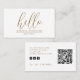 Diese Visitenkarte bietet einen einfachen minimalistischen Schrifttyp hello in Gold Typografie auf einem weißen Hintergrund. Fügen Sie Ihre Kontaktinformationen, Social Media-Informationen und QR-Code hinzu. Eine einfache Visitenkarte, die als freundliche Einführung dient.