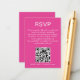 Minimalistisches Gehäuse für den QR-Code in weißem Text, Hot Pink, UAWG. Eine kleine Größe, um Ihre Einladungen zu ergänzen. Die Farbe und der Typ des Schriftartes können über das Menü Bearbeiten geändert werden. Sie können auch Text- und Hintergrundfarben auf beiden Seiten ändern, wenn Sie möchten. Fügen Sie Ihren QR-Code zu Ihrer Hochzeitswebsite auf der Rückseite als bequeme Option für Ihre Gäste zur UAWG. Sie wird automatisch generiert, wenn Sie den Beispielcode in Ihren eigenen ändern.