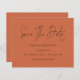 Budget Minimalistisches Script Terracotta QR Code Save the Date. Ein Preis SMALLER 4,5" x 5,6" Alternative. Erhältlich in einem SEMI-GLOSS 110 lb CARD STOCK, der die Standardoption (dicker für Einladungen) ist, ODER einem SATIN FINISH 80 lb THINNER PAPER STOCK (ideal für Gehäuse). Fügen Sie Ihren QR-Code auf der Rückseite Ihrer Hochzeitswebsite hinzu. Einfache Eleganz mit Save the Date in einem modernen Set-Skript.Die Erholung des Textes können Sie leicht personalisieren.Hier in schwarz auf Terrakotta dargestellt, aber die Text- und Hintergrundfarben können geändert werden, wenn Sie über die weitere Option anpassen möchten.
