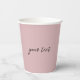 Ein einfacher, minimalistischer, rosa Hintergrund und schwarzer Text Papier Becher. Ideal für ein Party.