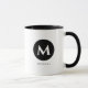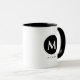 Minimalistische Vater Tasse in Schwarz-Weiß mit moderner Typografie. Es kommt mit Vorder- und Rückseite. Anpassen mit dem Initial und Namen des Vaters. Ideal zum Vatertag oder Geburtstagsgeschenk für Vater.
