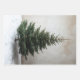 Das Bild zeigt einen schön geformten Weihnachtsbaum, der auf einer schneebedeckten Oberfläche stehend ist und mit kleinen, subtilen Lichtern geschmückt ist. Der Baum ist üppig und symmetrisch, mit einer natürlichen grünen Farbe, platziert an einer texturierten cremefarbenen Wand. Die schlichte, elegante Dekoration und das ruhige Ambiente schaffen eine friedliche und festliche Atmosphäre.