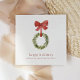 Ein minimalistischer Rot-Bug Weihnachten Kranz Feiertag Serviette. Dieses Party serviert einen rustikalen Weihnachtskranz mit einem roten Bogen. Jeder Text kann mit jedem beliebigen Text Ihrer Wahl angepasst werden.
