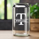 Minimalistischer weißer Buchstabe T Monogramm und Dosenglas