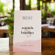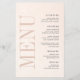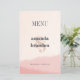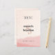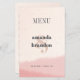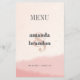 Minimalistisch Blush & Bloom Bold Script Wedding Menu Cards. Genießen Sie die eleganten Minimalistischen Blush & Bloom Bold Script Wedding Menu Cards. Mit einem zarten, rötlichen und goldenen Wasserfarbenwaschgang in Rose und dezenter Textur verleihen diese Karten Ihrem Hochzeitsempfang eine Touch von Liebe und Romantik. Auf der Vorderseite wird "Menü" in fett formatiert angezeigt, gefolgt von den Namen der Paare in fett gedruckter Schrift und dem Hochzeitstag, der Stadt und dem Staat. Auf der Rückseite wird "Menu" in einer auffallenden großen, vertikalen, kühlen Typografie gezeigt. Von Vorspeisen bis Vorspeisen, Desserts und Getränken wird die Speisekarte in einem modernen, fett geschriebenen Text schön präsentiert. Passen Sie den gesamten Text einfach über diese Vorlage an, sodass es eine angenehme Ergänzung zu Ihren Hochzeitstischen ist.