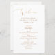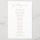 Dieses Hochzeitsprogramm besticht durch eine elegante Goldkalligraphie, die mit einem sauberen Serifentext auf weißem Hintergrund gepaart ist. Es ist für Einfachheit und Eleganz konzipiert und Kontur Ihre Zeremonie in einem übersichtlichen, leicht lesbaren Layout. Der bedruckte Goldeffekt (nicht reale Folie) schafft eine luxuriöse Touch ohne zusätzliche Kosten. Ideal für moderne, minimalistische, klassische oder formelle Hochzeiten. Dieses individuell gestaltbare Programm fügt Ihrem großen Tag ein feines und persönliches Detail hinzu.
