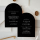Dieses dunkelschwarze, minimalistisch-schwarze Ganze in einer Boho-Bogen-Hochzeitseinladung ist perfekt für eine einfache Hochzeit. Das moderne romantische Design besticht durch dunkelschwarz-weiße Typografie gepaart mit einer rustikalen und eleganten Kalligraphie mit Vintagem handgeschriebenem Stil. Anpassbar in jeder Farbe. Behalt das Design einfach und elegant, wie es ist, oder personalisiere es durch Hinzufügen von eigenen Grafiken und Kunstwerken. Rett Papier, indem man die Details auf der Rückseite der Hochzeitseinladung statt auf einer separaten Kapselkarte angibt. Geben Sie auch die UAWG-Informationen an, ob Ihr Gast elektronisch antworten wird (optional).