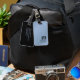 Modernes, individualisierbares Gepäckanhänger-Design mit fettfarbenem Monogramm, Textur blau und schwarz Hintergrund.