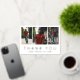 Minimalistischer Typ Abschluss flache Dankkarte mit mehreren Fotos. Die Vorderseite hat eine drei Foto Collage mit "Danke" in großen Buchstaben zusammen mit dem Namen des Absolventen in echter Goldfolie. Die Rückseite hat Ihre persönliche Nachricht. Diese moderne und einfache Dankkarte ist perfekt für einen Schulabgänger.
