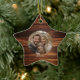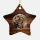 Ein bedruckter Holzkornhintergrund wird die Schönheit Ihres Fotos in der Familie auf diesem Sternschmuck abheben. Das schlichte minimalistische Design macht das Foto Ihrer Familie auffällig, während der Holzdruck im Hintergrund ein traditionelles Ambiente schafft. Es gibt einen Tempel für deinen Familiennamen und das Jahr in Casuskripttypografie.