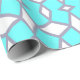 Abstraktes geometrisches Muster mit blauen und weißen Formen. Einfaches und elegantes Packpapier zum Verpacken Ihres besonderen Geschenkes