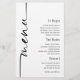 Größe 5.5" x 8.5" zum günstigen Preis, Budget Kalligrafie Minimalistische Hochzeitsmenü. Dieses moderne Design hat Menu in elegantem Set-Skript, das auf der links Seite läuft und die Erholung des Textes ist auf der rechten Seite ausgerichtet, die Sie leicht personalisieren können, sowie Ihre Namen und Hochzeitstag auf der Rückseite. Text- und Hintergrundfarben auf beiden Seiten können über die Option Weitere anpassen auf jede beliebige Seite geändert werden.