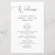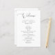 Dieses elegante Hochzeitsprogramm besticht durch eine saubere Schwarz-Weiß-Palette mit dezenten Skripten und klassischen Serif-Schriftart. Die Vorderseite listet Ihre Reihenfolge auf, während die Rückseite Platz für die Namen von Hochzeitsfeiern bietet. Ideal für minimalistische, traditionelle oder formelle Hochzeiten. Dieses anpassbare Programm fügt Ihrer Zeremonie eine durchdachte und polierte Touch hinzu.