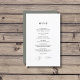 Minimalistische Einladungen zum Hochzeitsmenü - mit elegantem und trendigem handgeschriebenem Schriftart und schlauer grüner Farbe. Die Rückseite dieser eleganten Speisekarte ist sage grün.