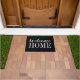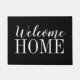Moderne, trendige, minimalistische Schwarz-Weiß-Türmatte mit dem Text "Welcome Zuhause" in einem handgeschriebenen Schriftart.