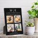 Moderne Minimalistische Business Countertop oder Tabletop Business Product Tabletop Sign Plaque mit 4 Fotos. Schwarz & Weiß oder wählen Sie Ihre eigenen Farben. Ideal für Einzelhändler, kleine Geschäfte, kleine Kioske, Messen und Events, Gastfreundschaft, Salons, Wellness-Center, Bäckereien, Cafés, Restaurants, Bars und vieles mehr. Einfach mit Ihren Monogramm-Initialen, Firmennamen und Informationen, Fotos, Slogan oder sogar mit Ihrem Logo oder persönlichem Markendesign personalisieren.